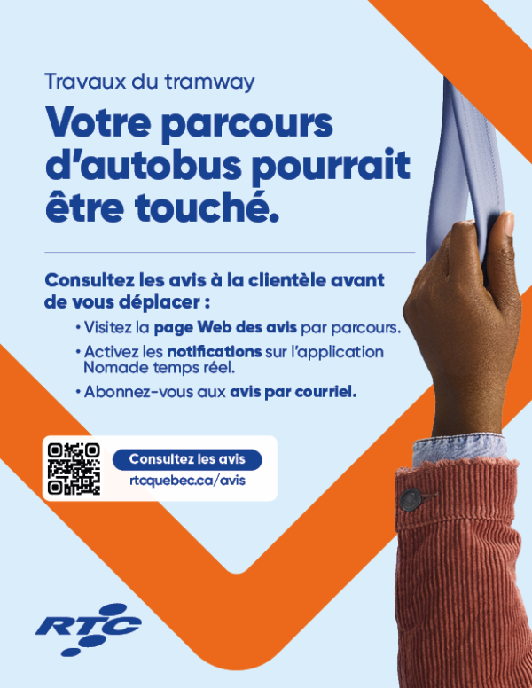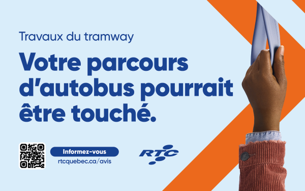 With the construction of the tramway, many construction sites are planned in Québec City over the next few years. This work will take place on major traffic arteries in the city, which are at the heart of our bus network. We must therefore adjust our bus service to bypass the construction zones. These changes will enable us to continue providing reliable service and maintain service in the affected areas.