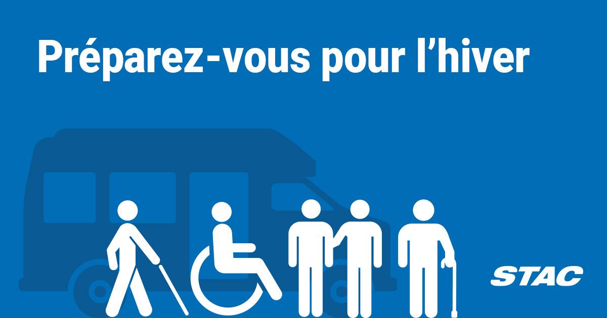L’Alerte STAC se déclenche lorsque les conditions météorologiques risquent d’affecter le service de transport adapté. Nous annonçons le début de l’Alerte STAC et le retour progressif au service habituel dans notre infolettre et dans la section Nouvelles du site Web du STAC.